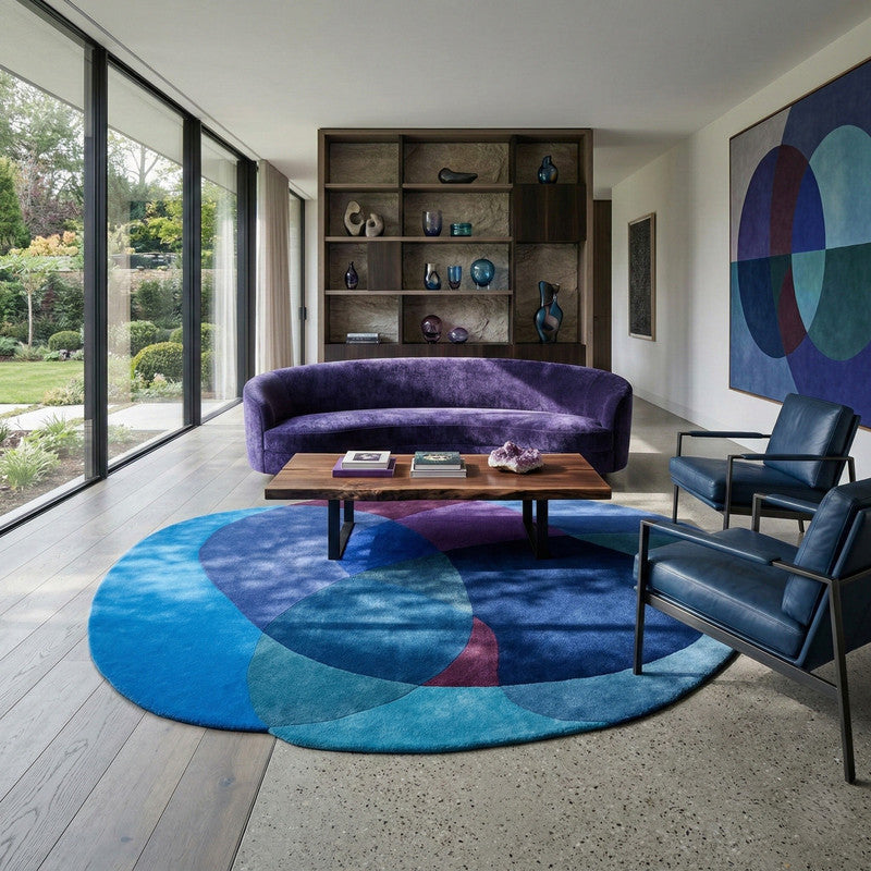 Candyform Blue Abstract Irregular Shaped Hand-Tufted Wool Carpet