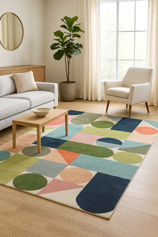 Geoshapes Hand Tufted Wool Carpet in Multicolor