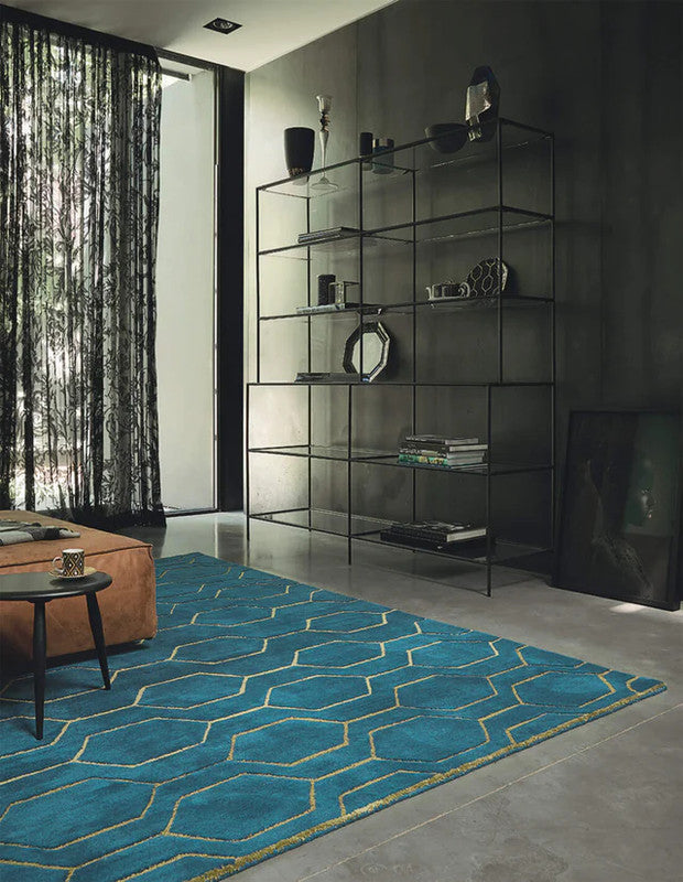 Honeycomb Teal Hand-Tufted Wool & Silk Carpet