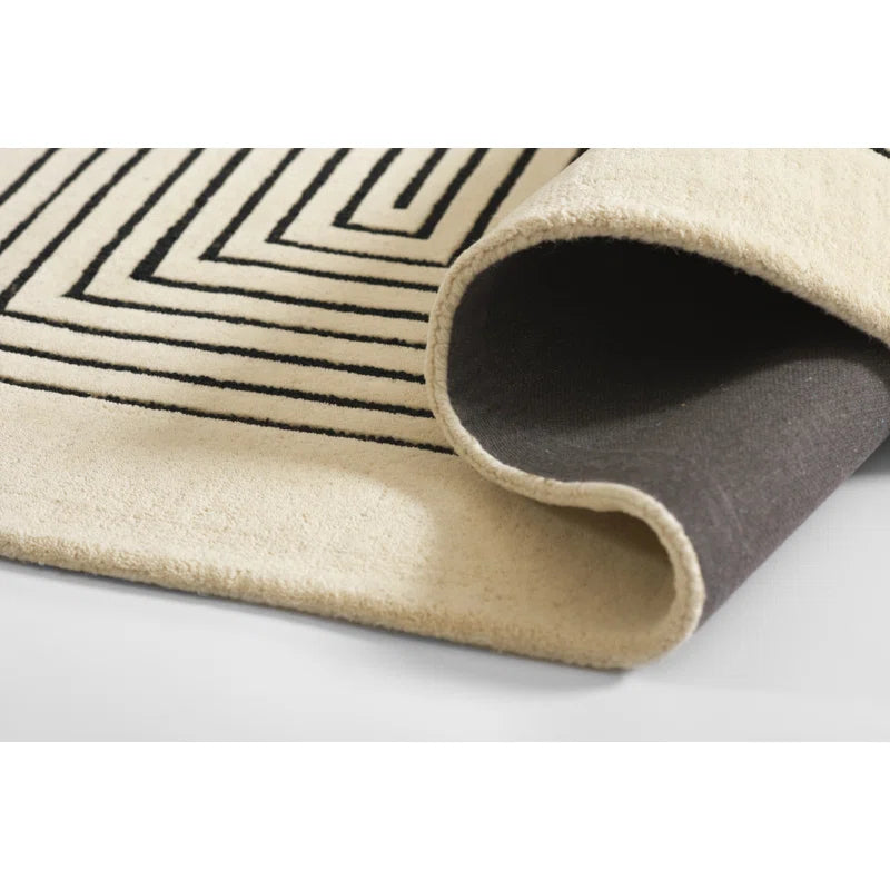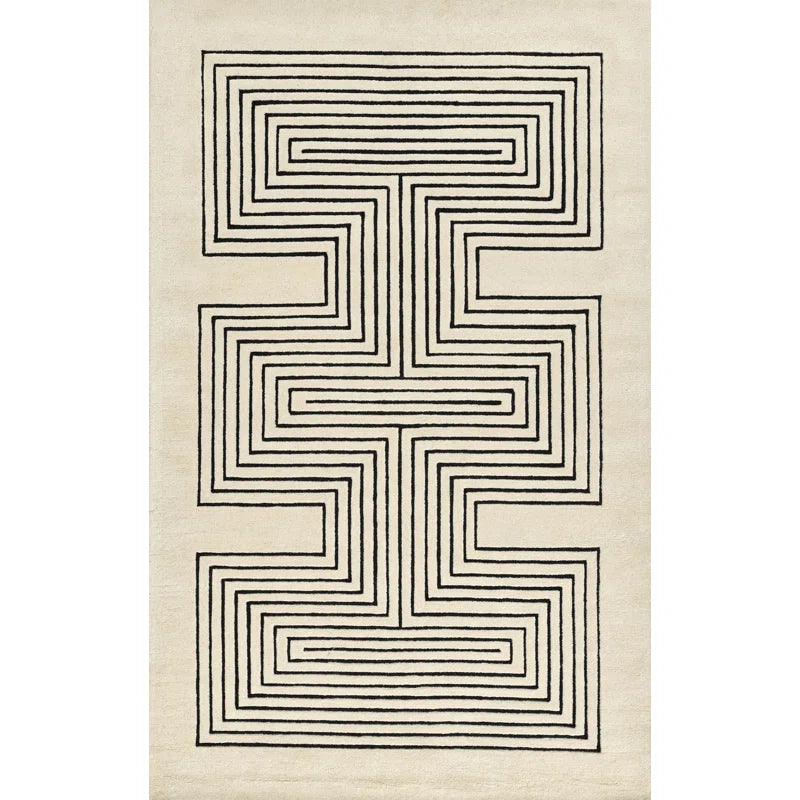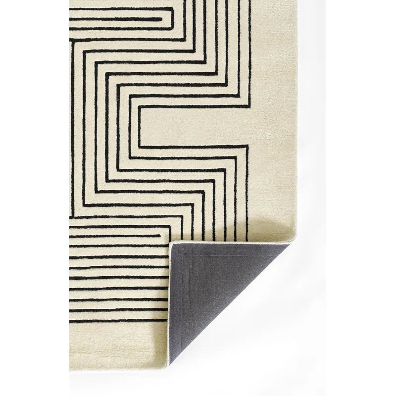Mazeform Hand Tufted Wool Rug in Black and Ivory